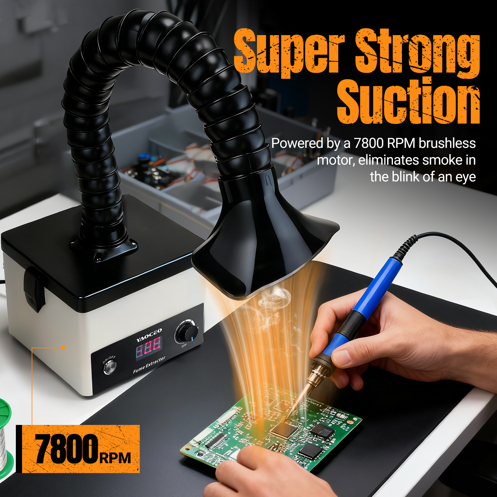 YC60 Solder Fume Extractor, High Power Solder Smoke Absorber with Digital Display & Speed Control, 3-Stage Filtration (HEPA+Carbon), Fume Extractor for Desktop Soldering,Welding-Includes 5 Pre-Filters